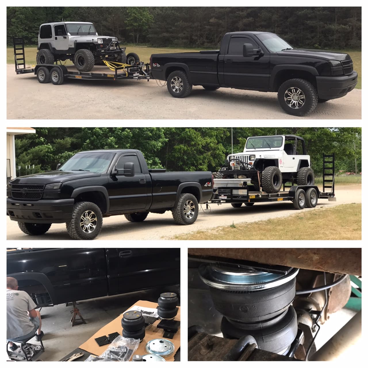 “I keep 30 PSI in the bags even when I’m not hauling anything and I put 50-60 PSI in the bags when I’m hauling the trailer and Jeeps,” Cody says. “I have more steering control in the front and [the Air Lift system] made my ride in the cab much more comfortable for those longer trips across the state.”