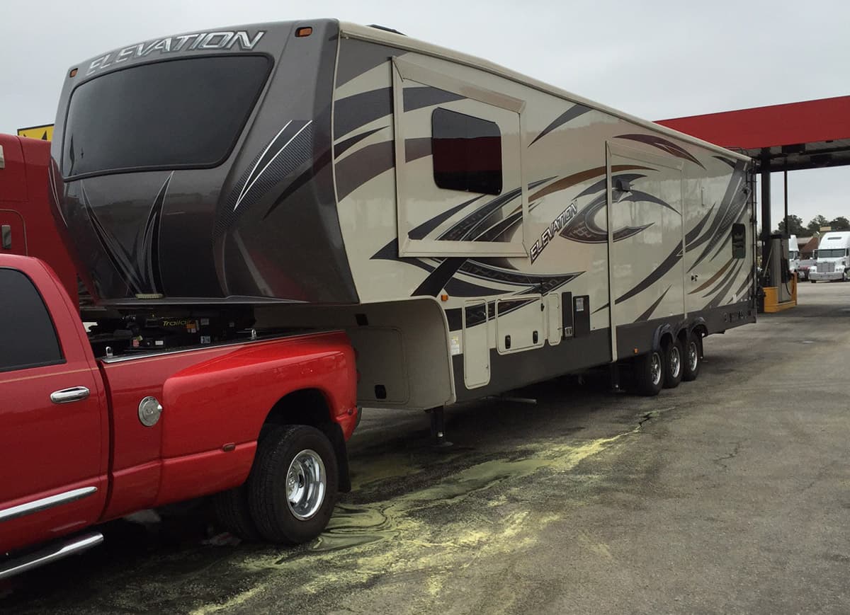 In order to bring his motorcycle with him when camping, Don purchased a 2016 fifth-wheel toy hauler. The rig is 42 feet long and weighs in at 18,200 pounds when fully loaded with motorcycles. Whether he’s pulling the toy hauler to a campsite or his pontoon boat to the lake, his 2008 Dodge RAM 3500 is more than enough truck to handle the job.